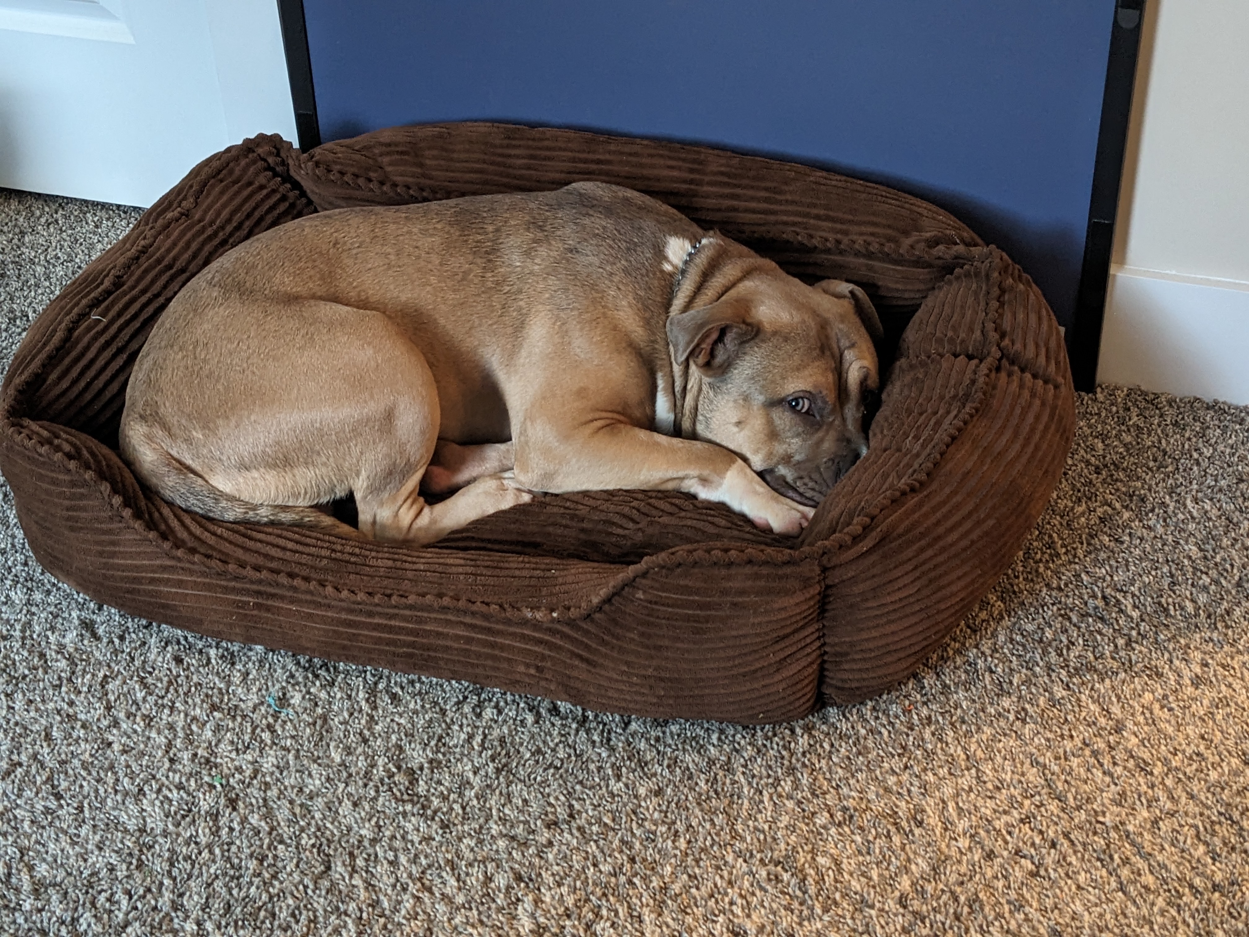 Dozer Sleeping on Bed